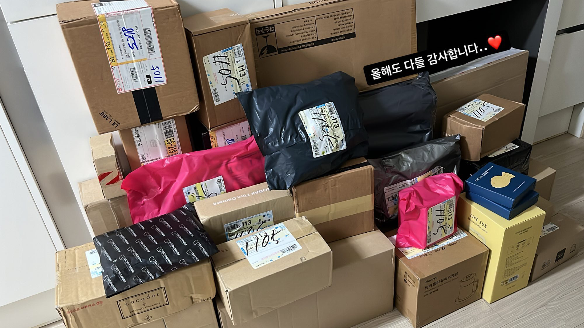 올해도 많은 사람들의 축하를 받아서 생일선물 언박싱도 엄두도 못 내고 있었다...❤️ 지인이랑 다솔이가 우리 집 집들이를 오면서 같이 도와줘서 거의 뭐 기계처럼 박스를 뜯고 박스를 정리해서 덕분에 선물을 모두 뜯을 수 있었다! 지인 다솔 다시 한번 고마워❤️