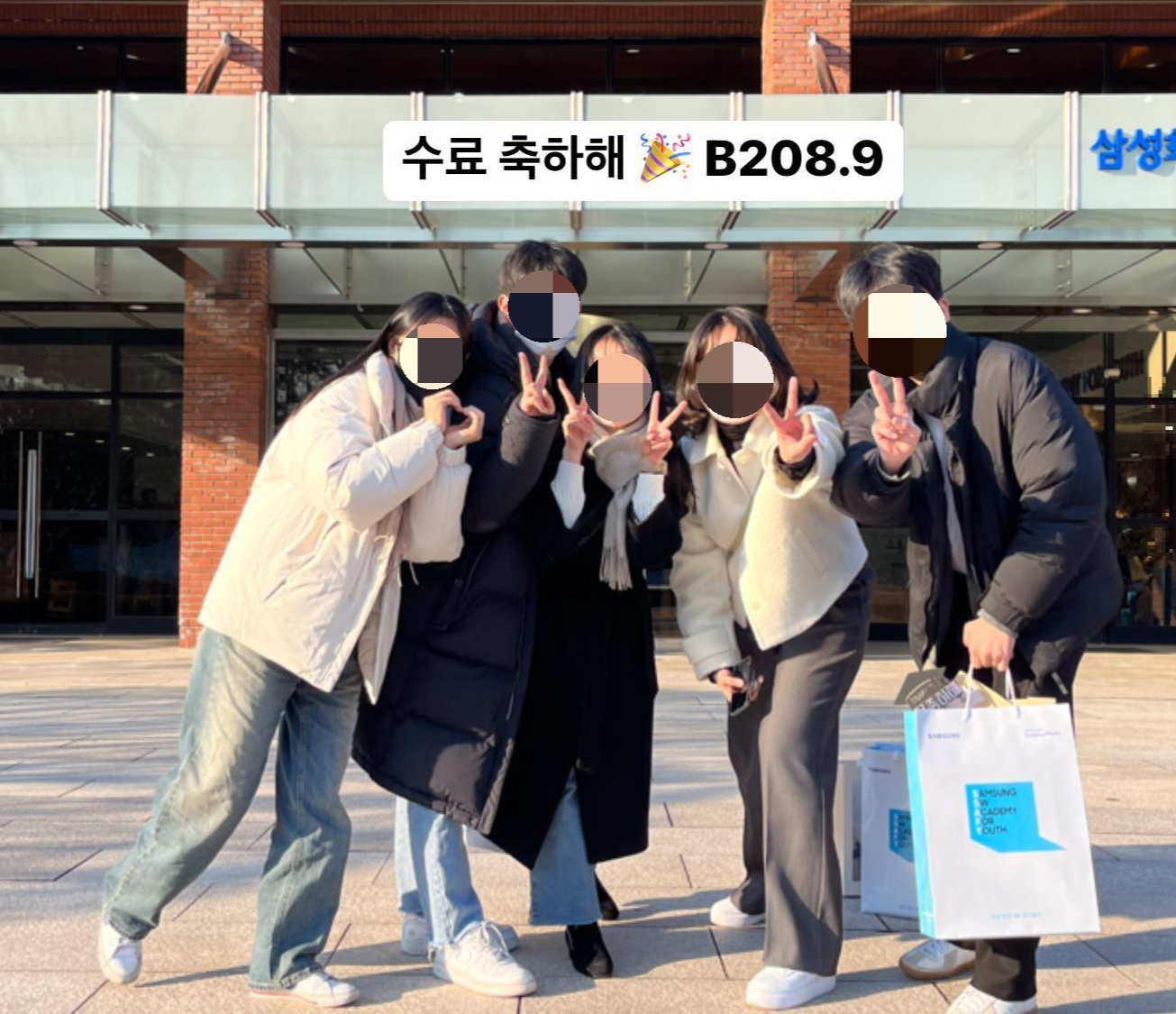 수료식이 있던 날, 1년 간의 SSAFY 생활을 행복하게 해 주었던 사람들과 사진도 찍었다! 공통 프로젝트 때, 나는 B208 팀이었지만, B209팀과 친해져 아직까지 재밌게 잘 놀고 있다... 그래서 B208.9 팀과 기념사진도 찍었고, 5반 사람들과 함께 사진을 찍었다! 센터 본능 발동한 나는 이날 모든 사진에서 센터에 서있었다(?) 인스타에 올리고 친구가 왜 자꾸 센터에 있냐 해서 알았다...ㅋㅋㅋ