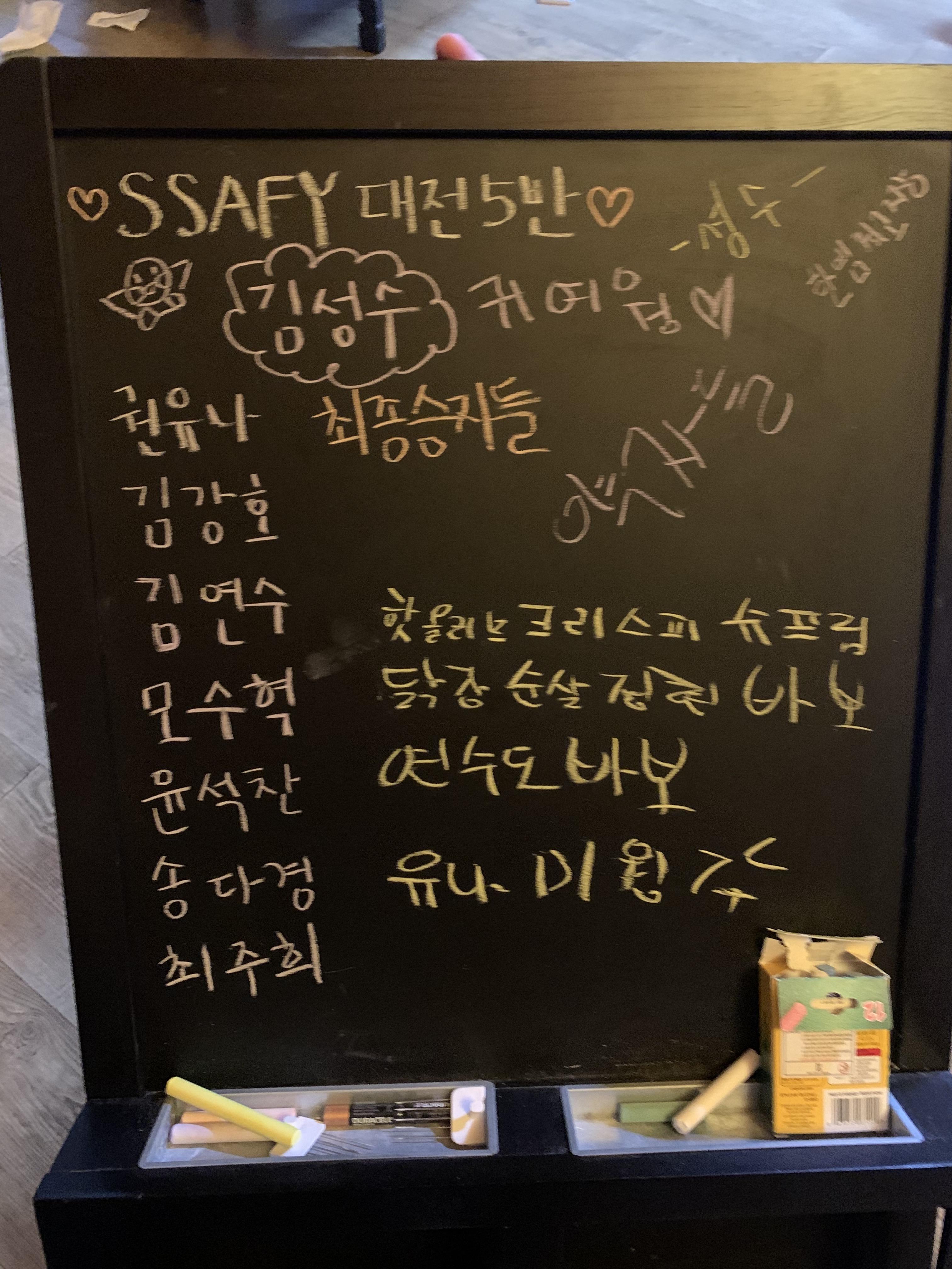 아무튼, 대전 5반이 SSAFY 중에서 제일 끈끈하고 가족 같은 행복한 반인게 확실하다! 이렇게 좋은 사람들과 함께할 수 있어 너무 행복했고, 앞으로도 좋은 인연 계속 이어가고 싶다!!!